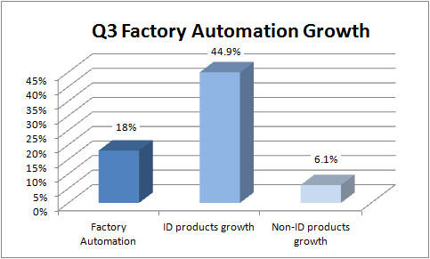 Indeed, its ID product revenue grew by 45% in the quarter to $25.5 million, and now represents 35% of its total factory automation revenues.