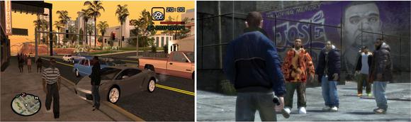 GTA: San Andreas for PS2 (left) vs. GTA IV for PS3 (right). Source: Gtanet.com