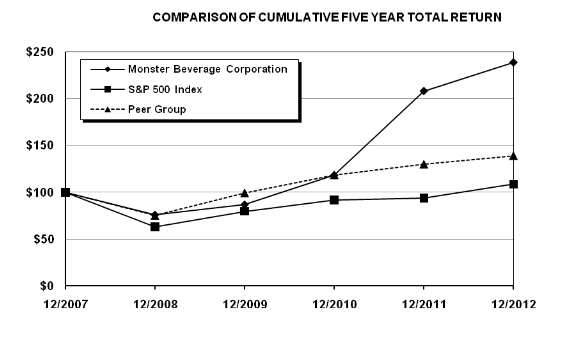 As seen in the chart below, Monster also considers Dr. Pepper Snapple and much smaller competitors Cott, National Beverage, and Jones Soda as part of its peer group for comparison purposes. All four offer some version of an energy drink.
