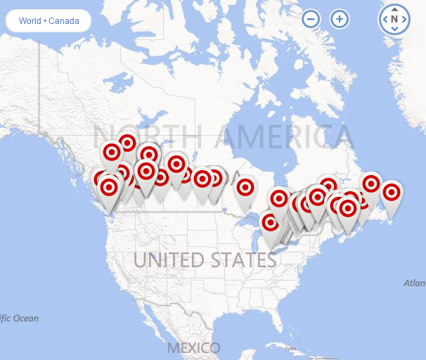 Target opened its first Canadian stores in March and now operates 91 Target locations in the country. The discounter plans to open an additional 31 stores on Nov. 13, and two more on Nov. 22 for a total of 124 store openings across all 10 Canadian provinces in 2013. The move marks Target's first expansion outside of the United States.