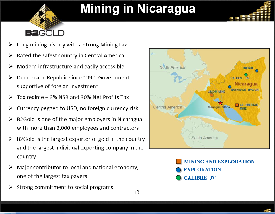 My point is widely recognized within mining circles; the managers at B2Gold have had huge success in the past. They were the guys that founded Bema Gold in 1988, building the company from a junior explorer to an international gold producer. Not one for attachment, Clive Johnson and team cashed out at the right time (thanks to Kinross). Winning over Nicaragua's Daniel Ortega and Fidelity must have been easy compared to that.