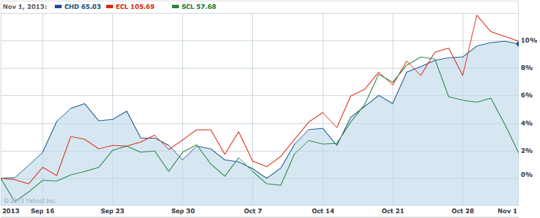 Since my first article on Church & Dwight on Sept. 11, its two noted competitors have reported quarterly results. Ecolab (NYSE: ECL) released a mixed third quarter on Oct. 29, with earnings per share coming in at $1.04 versus estimates of $1.03 and revenue of $3.50 billion versus estimates of $3.54 billion. Earnings grew 25% and revenue rose 15% year over year, making for a solid quarter.