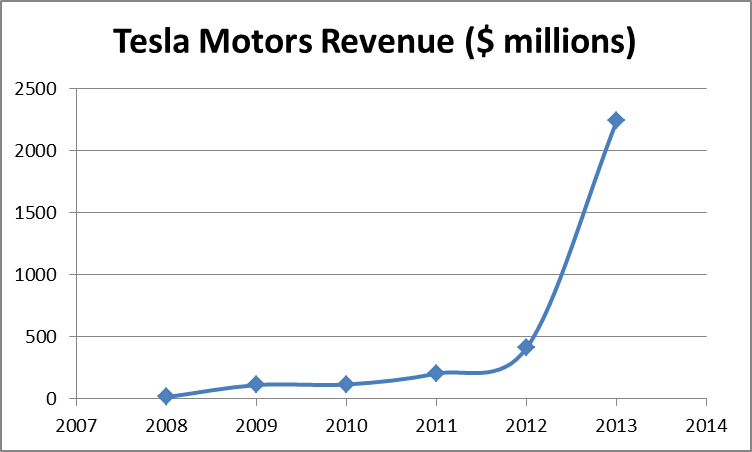 Before we dive into the numbers and start critiquing Tesla, let's take a moment to appreciate just how far the company has come. Tesla reported $431 million in revenue during the quarter. Considering where the company stood just a few years ago, that's an incredible achievement. From the chart below, I think it's fair to say the Model S is a hit:
