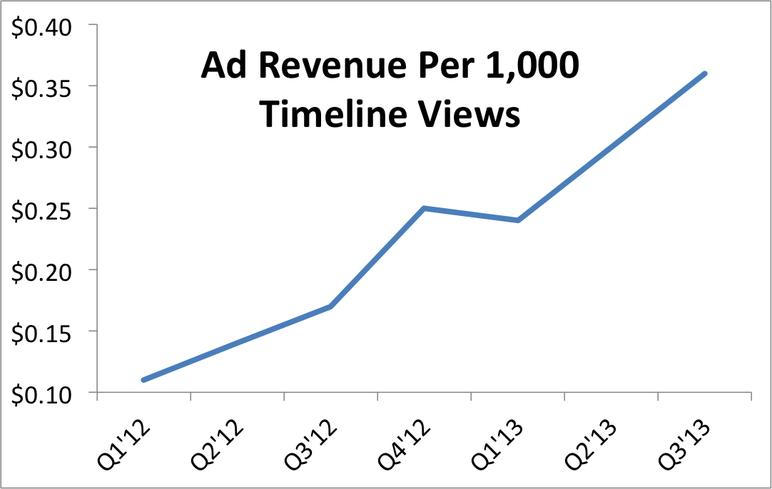 In fact Twitter looks like it's already on the path to rapid monetization of international users. If Twitter's seven quarters of data on international ad revenue per 1,000 timeline views is any indication of how the company may do internationally in the future, investors should expect plenty of international revenue growth.