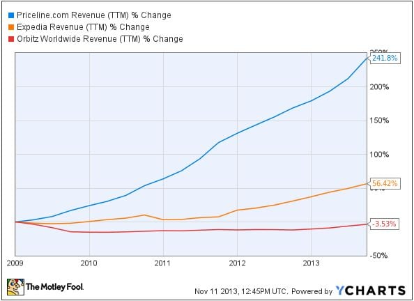Priceline.com (PCLN 0.18%) reported earnings on Nov. 7, and the online travel company is clearly firing on all cylinders. Priceline delivered strong growth in both sales and earnings, and it continues gaining market share versus competitors like Expedia (EXPE 1.67%) and Orbitz Worldwide (NYSE: OWW). This profitable growth company continues delivering.
