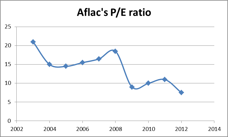 In relation to its peers, Aflac looks like an even better bargain. The Hartford, for example, trades at a similar valuation, but the company's earnings history is extremely shaky.