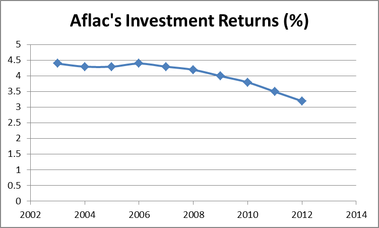 Over the past several years, the company's return on its investments has declined significantly, leading to lower profit margins. Once interest rates begin to pick up, a 1% increase in investment returns could mean an additional $1.16 billion in earnings for Aflac, or about a 40% increase over this year's net profits. Now may be the time to buy before the market fully realizes Aflac's huge earings potential.