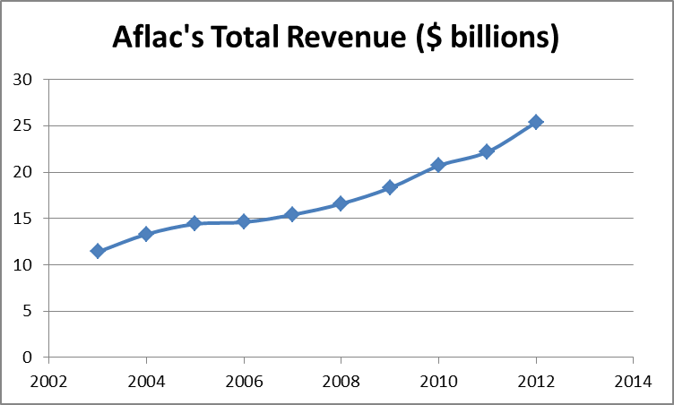 In the U.S., the company markets its products as supplemental insurance to consumers who already have major medical insurance. The main selling point is that Aflac pays insurance claims in cash directly to the customer, unlike primary insurance. Aflac has had tremendous success with its marketing approach in both the U.S. and Japan, and the company's total revenue has soared over the past decade.