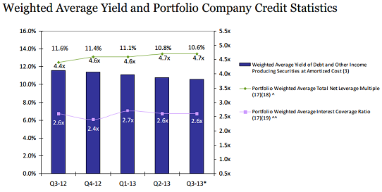 If $0.44 in core earnings per share does continue into 2014, Ares Capital will have to increase either its special dividends or quarterly dividends in order to comply with a requirement to pay out 90% of income to shareholders.