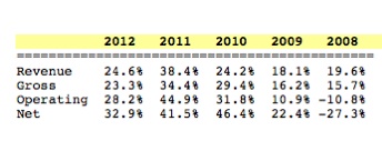 Meanwhile Nike's appeal is not in high growth bursts, but in measured sustainable and predictable performance year after year. Nike's compound annual growth rate has been 9.9% since 1994. Under Armour's run has been spectacular. It looks like Kevin Plank has every intention of keeping it there with expansion into the international market and perfecting the athletic shoe.