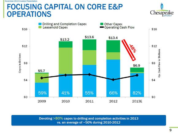 Not only has the company's capital expenditures dropped by almost half this year, but the way Chesapeake is spending those dollars is just as important. Instead of paying out over 50% of its expenditures to lease land it had not yet drilled like it was doing back in 2011, it's putting more than 80% of its capital toward actually growing production. This sort of change in capital spending has Ichan and other activist investors' fingerprints all over it, and it was probably exactly what Chesapeake Energy needed.