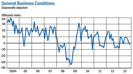 Comprised of surveys from around 100 New York executives, the Empire State Manufacturing Survey attempts to determine whether certain components of manufacturing have experienced growth (positive number) or contraction (negative number). Investors watch New York manufacturing (and other regions as well) as a possible signal of larger economic upswings or downturns.