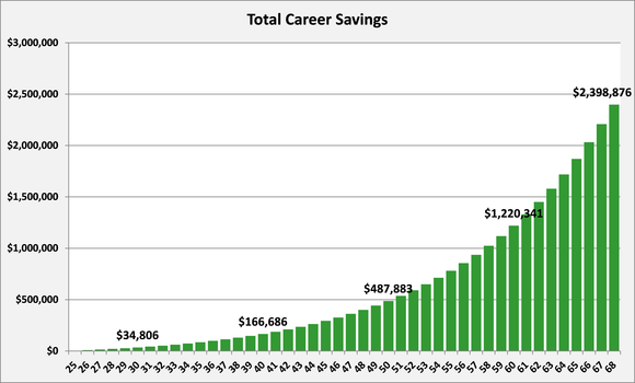 Though it looks small at first, through diligent, patient saving over the course of a career, one can make an incredible amount of money without a whole lot of effort.