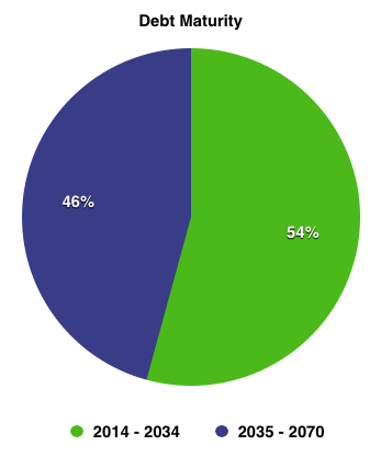 When we look at the same statistics for Kinder Morgan Energy Partners and Energy Transfer Partners, we can see how strong Enterprise's debt portfolio really is. Kinder Morgan has 33% of its debt due in the years between 2035 and 2070, while Energy Transfer has 32% due during the same period. The average interest rate on KMP's bonds due by 2044 is 6.03%, and for ETP, it's 6.37%. Again, Enterprise looks stronger on this front.