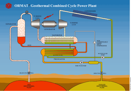 In the lower right of the image, you can see how Ormat's technology injects cooled water back into the ground to be used again.