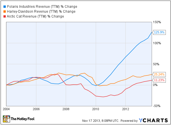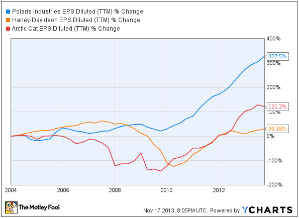 However, when compared against competitors like Harley-Davidson and Arctic Cat, Polaris has proven an unmatched ability to grow sales and earnings through the ups and downs of the business cycle.