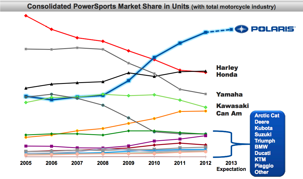 This superior financial performance did not come out of thin air: a strong brand presence and a focus on quality and innovation have allowed the company to gain market share in the power-sports market over the last years.