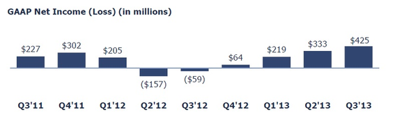 Third-quarter earnings for Facebook were impressive. Revenues increased to $2.02 billion from $1.26 billion in the comparable quarter last year. This was largely due to increased mobile advertising revenues. Net income came in at $425 million, a remarkable increase from the $59 million loss posted in the comparable quarter last year.