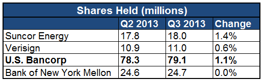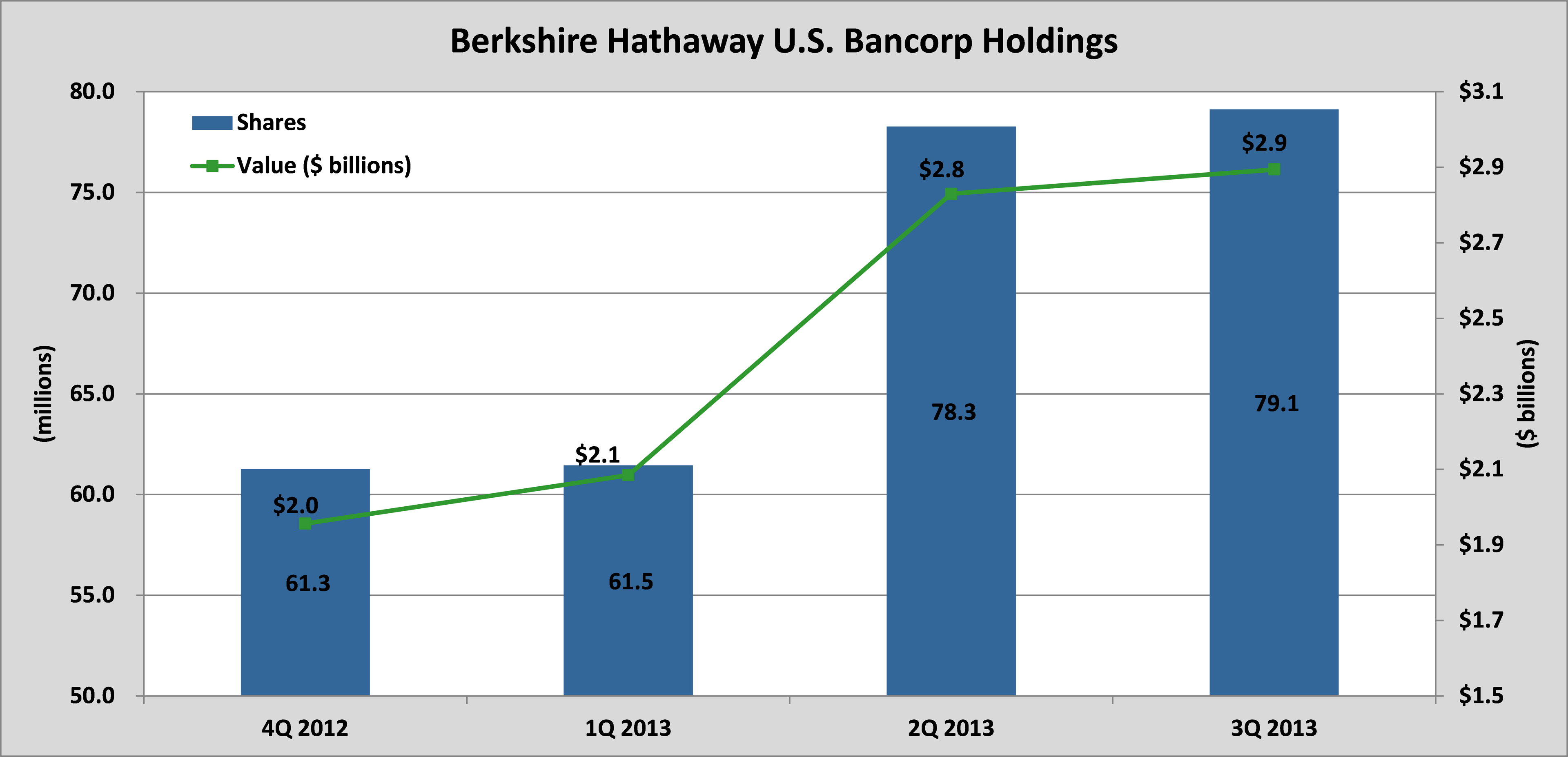 Since Buffett and Berkshire Hathaway have clearly shown greater affinity for Wells Fargo, where the value of the shares held is roughly six times higher, it is certainly interesting to see the continual purchases of US Bancorp shares: