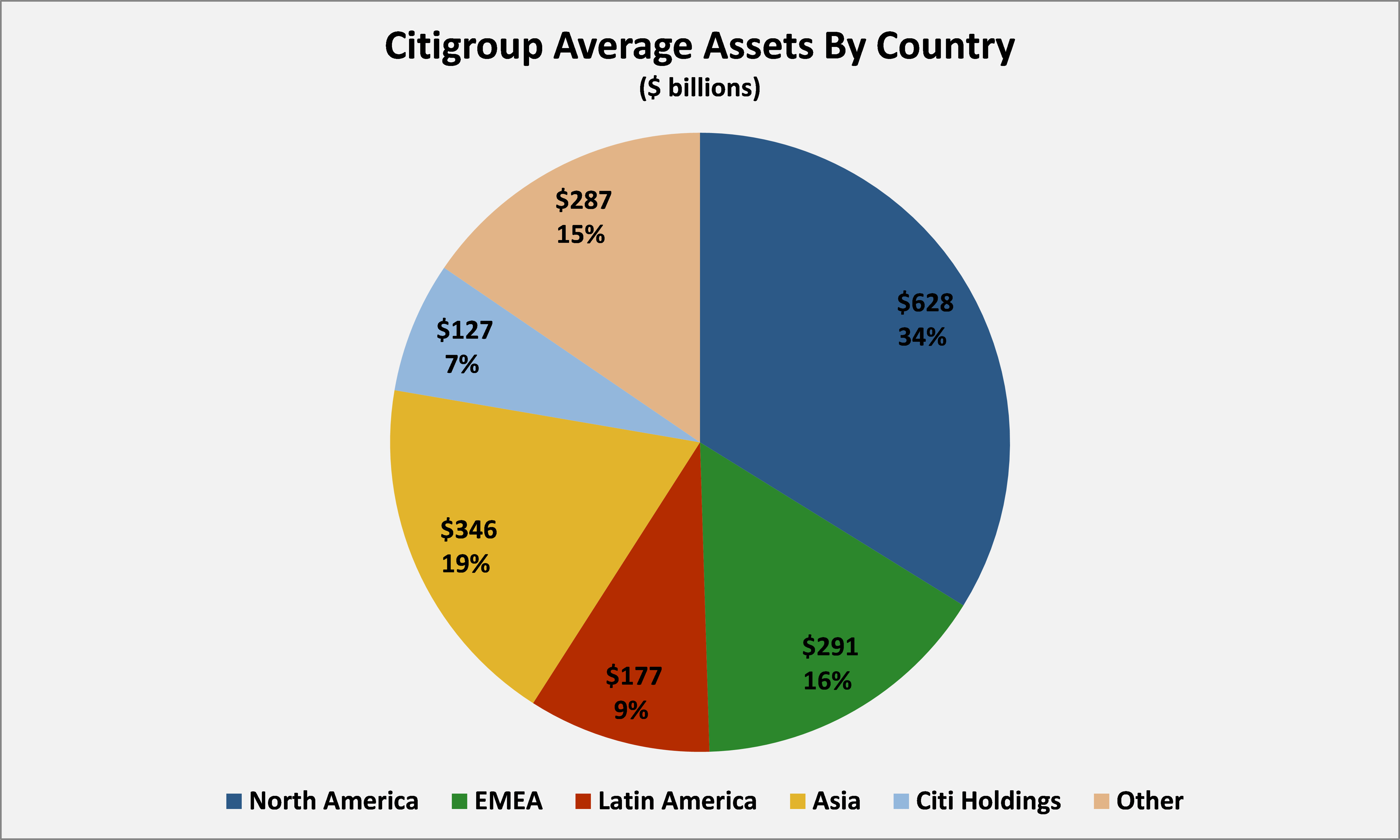 For example, did you know that Citi is the No 1 issuer of credit cards globally? Or that its retail bank has 23.9 million customers in North America, 20.7 million customers in Latin America, and 15.1 million customers in Asia? But the bank is diversified not just among regions, but also among countries within those regions as well.