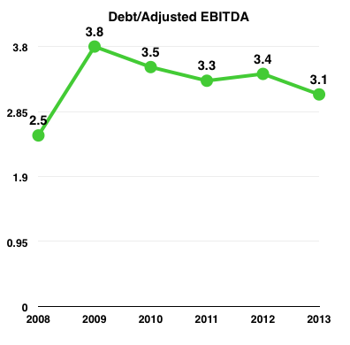 To determine whether Magellan's assets are generating enough cash to pay its debts, we look to the debt-to-adjusted EBITDA ratio.