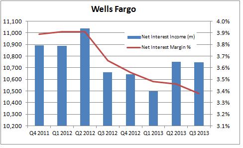 For example, although Wells Fargo (WFC -1.85%) recently reported record quarterly net income, its net interest margin has been declining for more than a year now.