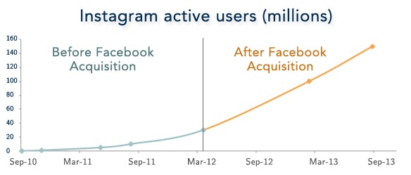 First, in terms of user metrics, Instagram looks like a great acquisition. When Facebook acquired it in April 2012, the application had only 30 million users. Eighteen months later, it has passed 150 million users, handling more than 55 million pictures per day, thanks to Facebook's efforts to integrate the app to its platform. According to tech consultant Ben Evans, this trend resembles YouTube, which quickly increased in popularity after it was acquired by Google in 2006.