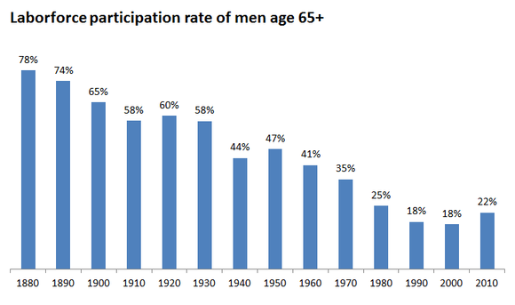 Even in the nostalgic 1960s, more than 40% of men age 65 and over were still working or looking for work: