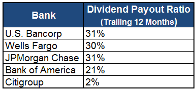 As a result, Citigroup has one of the lowest dividend payout ratios (the money it distributes back to shareholders in the form of dividends) in the industry, as shown in the chart below: