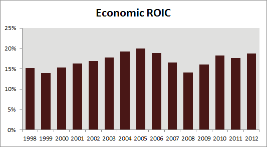 The combination of high returns on invested capital and shareholder-friendly management has enriched shareholders over the last two decades.