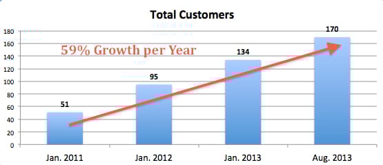 In order for Veeva to keep up its torrid pace of client additions, don't look for the list to grow by too much. The last number represents the total number of clients on Aug. 31. The end of the quarter for the company occurred on Sept. 30, so there was only one month for the company to rise above 170.
