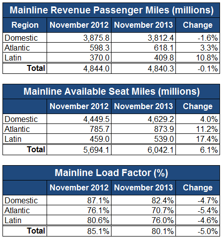 While the Revenue Passenger Miles and Load Factor were each down in November, year to date, the company has seen its revenue passenger miles increase by 4.8% versus last year, and its load factor is up to 84.7% from 84.2%.