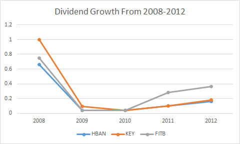 As displayed above, dividends were on the way down in 2008, and that trend would continue until 2010, when dividend growth returned. So, for investors concerned about dividends (and who isn't?), they seem to be slowly but surely working their way back.