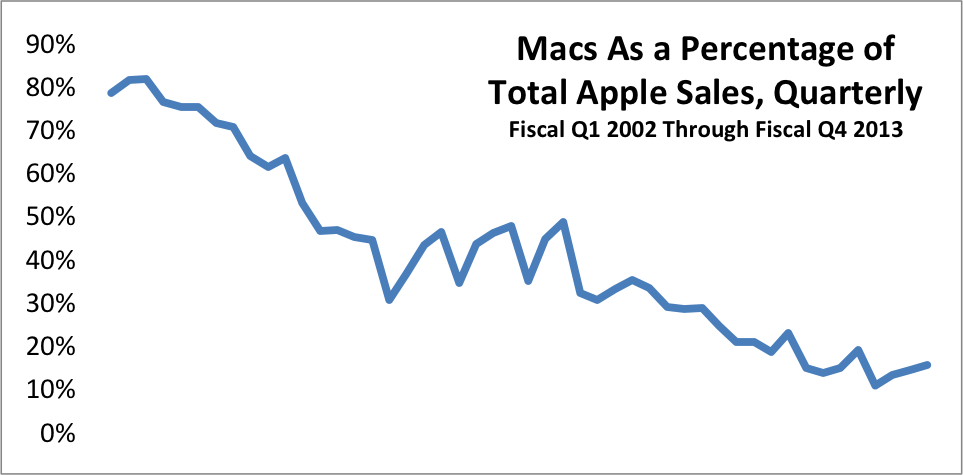 Since Apple introduced the iPod in 2001, however, Mac sales have declined as a percentage of total sales very rapidly. But that doesn't mean Apple's Mac segment isn't doing well. In fact, its looks like the Mac may outsell every one of its peers this holiday season, according to one study.