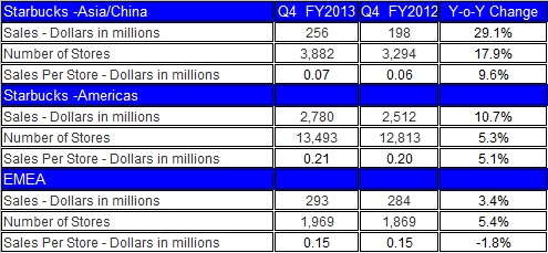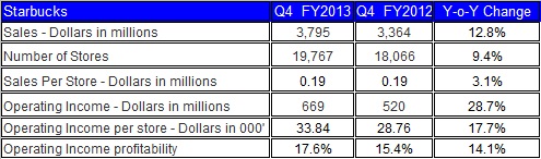 Therefore, if the company slows its growth in number of locations, this will have a severe impact on revenue. For next year, the company expects to open 1,500 new locations -- nearly half of them in Asia. This is 200 fewer stores to be opened compared to 2013, but Starbucks is likely to maintain a double-digit growth rate in revenue.