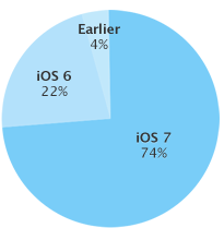 The first is that Apple just reported that adoption rates for iOS 7 are at a staggering 74% now. That's for all devices running the software, including iPad, iPhone, and iPod Touch. After Apple launched iOS 7 back in September, the number of iOS 7 devices outnumbered iOS 6 devices in just 72 hours. Apple said it was "the fastest software upgrade in history."