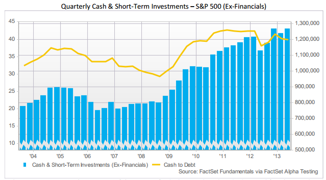 But the U.S. equity markets are getting scary, not because valuations are frothy, but because companies are holding too much cash. Way, way too much cash.