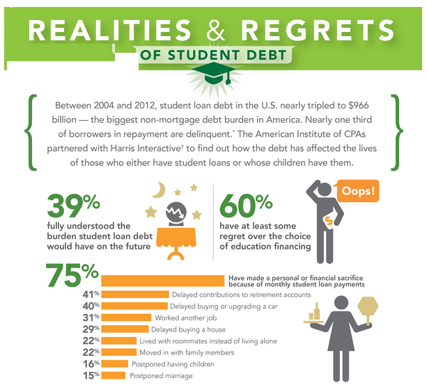 Those debts are keeping young people from buying homes, cars, and even has couples delaying marriage and having children. In fact, for the first time in decades young people without student loan debt are buying more cars and houses than those with student debt.