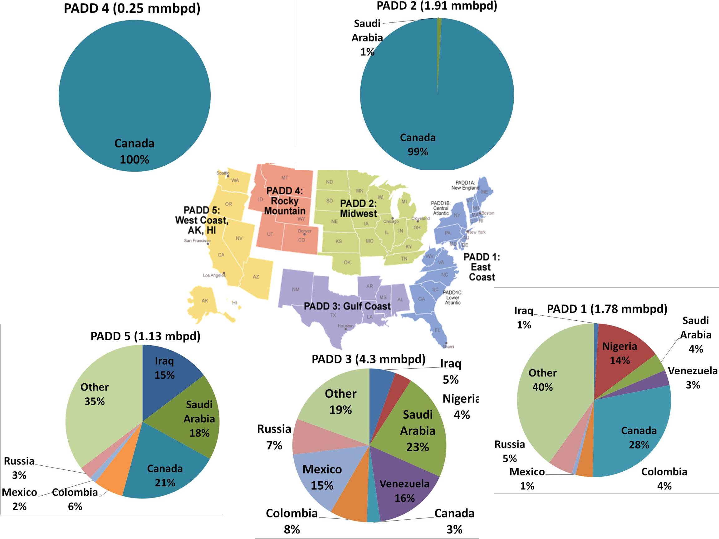 Another important point to note on Burlington's rail system is its access to the major refinery systems. This chart below breaks down the total U.S. crude oil imports by Petroleum Administration for Defense Districts -- better known as PADDs -- and the origin of those imports.