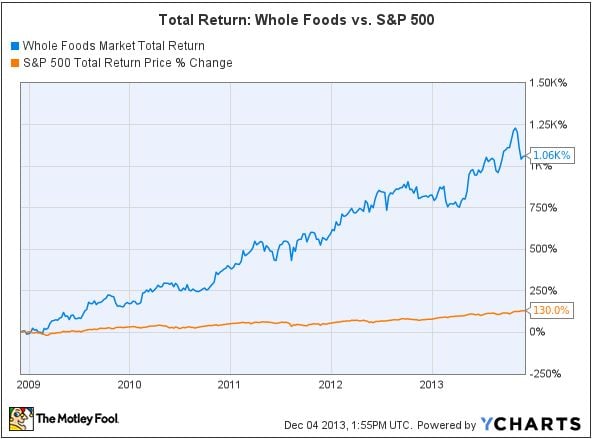 Whole Foods is a very profitable company, with operating margins of 6.7% versus an industry average of 3% according to data from Morningstar. Happy employees are in fact making investors happy too, at least according by the stock´s performance over the last few years.
