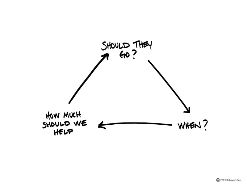 People avoid or skip this discussion completely, often because it's the one that triggers the strongest emotions. Some people want to pay for any school where their children win acceptance, regardless of cost. Other parents feel strongly that their children need to earn and pay for their own education. Often these feelings reflect personal experiences, and it's worth talking about all of them to make sure you understand what's at the root of your instinctive reactions.