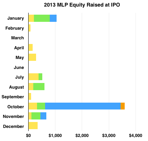 Our 20 MLPs raised roughly $7.5 billion in equity combined with their initial offerings. Here's how it looked by month: