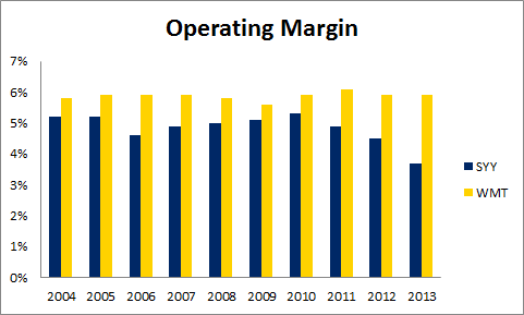 Sysco and Wal-Mart's competitive advantages are so similar, in fact, that the two companies even earn similar operating margins.