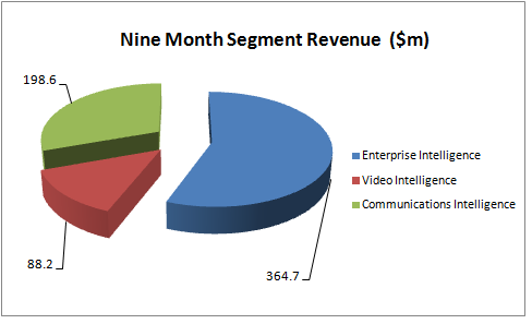 If there was a disappointment, it was with the 3.3% rise in enterprise intelligence revenue. Verint's management argued that this was a consequence of weakness in Europe, because its Americas enterprise business was up "mid to high single digits."