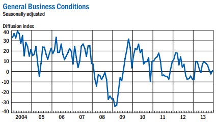 For December, the survey's general business conditions index clocked in at 0.98 points, up from November's -2.21 reading but a far cry from analysts' predictions of 4.50.