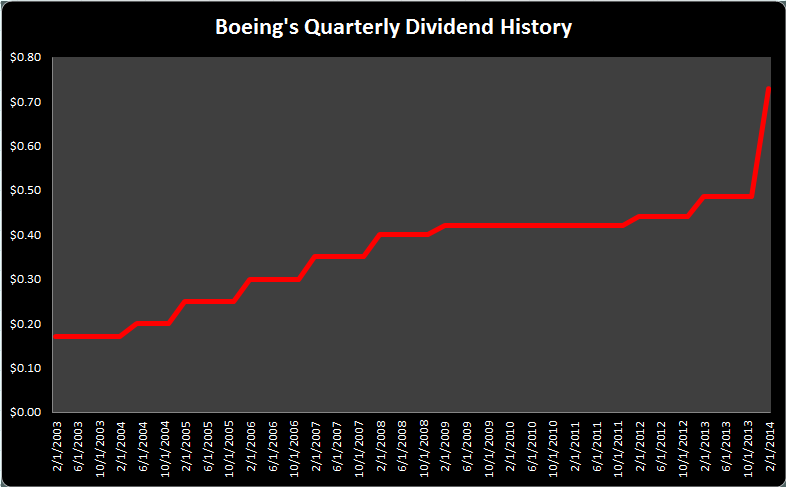 Boeing's board of directors also authorized an additional $10 billion for the company's share repurchase plan that will be timed over the next two to three years. According to Boeing, even a substantial dividend hike should leave the company with plenty of flexibility.