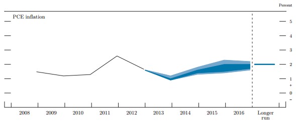 Inflation, generally considered to be the least worrisome aspect of the economic recovery, should continue to steadily rise to long-run levels. The 2013 general estimate range puts inflation between 0.9% and 1%, with a consistent rise to somewhere between 1.7% and 2% for 2016.