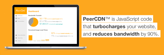 Instead, the company uses software -- pure JavaScript -- to reduce bandwidth costs by up to 90%. The company uploads the client's site -- images and other downloads -- over a peer-to-peer network made up of the visitors of the client's sites. This system allows PeerCDN to work without operating heavy infrastructure. Furthermore, because PeerCDN only takes over when it can provide better site performance, it can work together with traditional CDNs, such as Akamai and InterNAP.