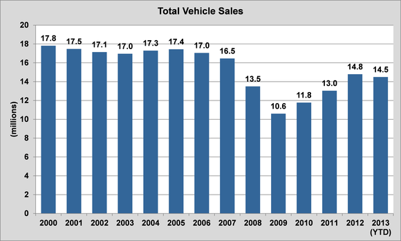 While things are not where they were before the financial crisis, the 14.5 million vehicles sold through the end of November would best the total sales of each year between 2008 and 2011. When you consider the average December over the previous 13 years had 1.3 million vehicles sold, it also means that 2013 will represent not only represent a great year for Ford, but the entire automotive industry: