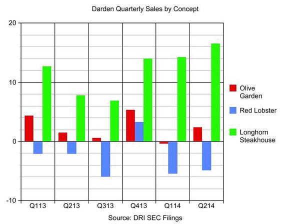 Compared to growth restaurants like Yard House, Eddie V's, and Capital Grille, which Darden added to its portfolio over the past year or so, Red Lobster and Olive Garden are more mature concepts that have been experiencing declining foot traffic and same-store sales. LongHorn Steakhouse has been the happy exception.